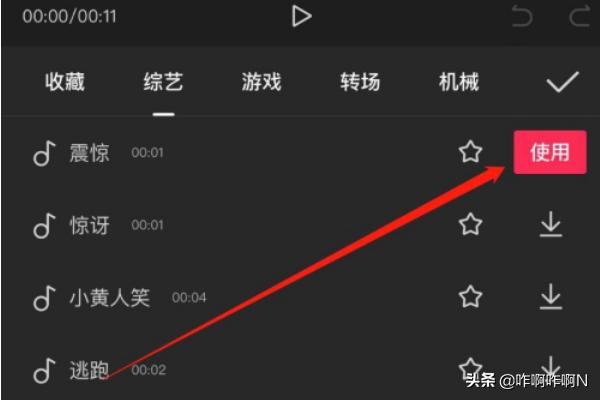 5.根据上面的标签,选择自己喜欢的音频,选择好后,点击“使用”。