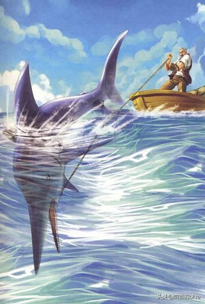 老人先松开钓丝,然后大喝一声,用尽全身的力气收拢钓丝,但鱼并不肯轻易屈服,非但没有上来一英寸,反而慢慢游开去.老头把钓丝背在脊梁上增加对抗马林鱼的拉力,可是作用不大,他眼睁睁地看着小船向西北方飘去.老头想鱼这样用力过猛很快就会死的,但四个小时后,鱼依然拖着小船向浩渺无边的海面游去,老头也照旧毫不松劲地拉住背在脊梁上的钓丝.他们对抗着.